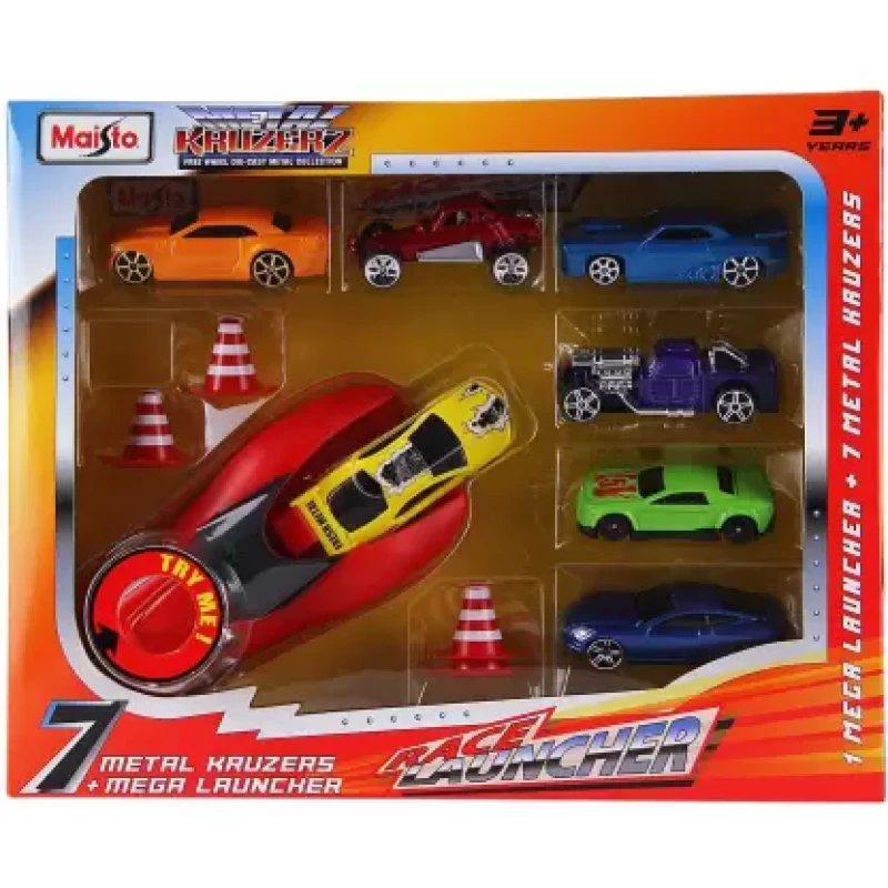 Rev up the fun with the 7-Car Rapid Launcher with Metal Die-Cast Cars! This action-packed playset combines speed, stunts, and endless excitement. The launcher features a sleek design and easy-to-use mechanism that lets kids zoom their cars out with a simple push and press. Built with sturdy materials and vibrant colors, this toy is perfect for unleashing creativity and engaging kids in thrilling racing adventures.