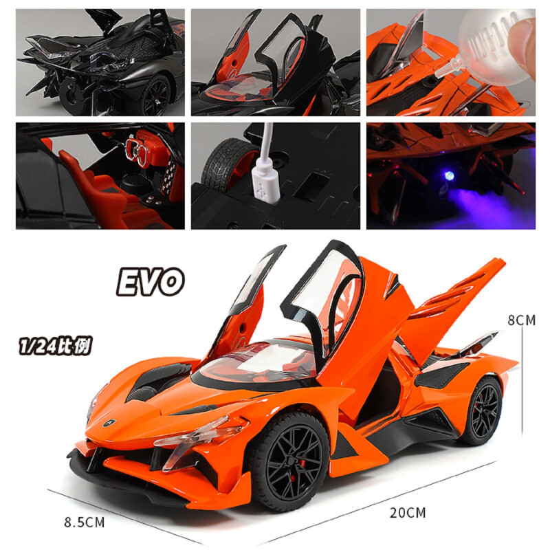 Apollo Evo Spot Premium Alloy Metal Die-cast Pull Back Car Model Toy With Openable Doors, Engine Sound, Led Lights & Music For Kids