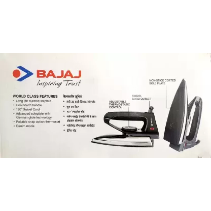 The BAJAJ DX 2 600W Dry Iron is a lightweight, fast-heating iron with a non-stick soleplate, ideal for quick and efficient ironing at home. Its portable design makes it easy to handle and store.