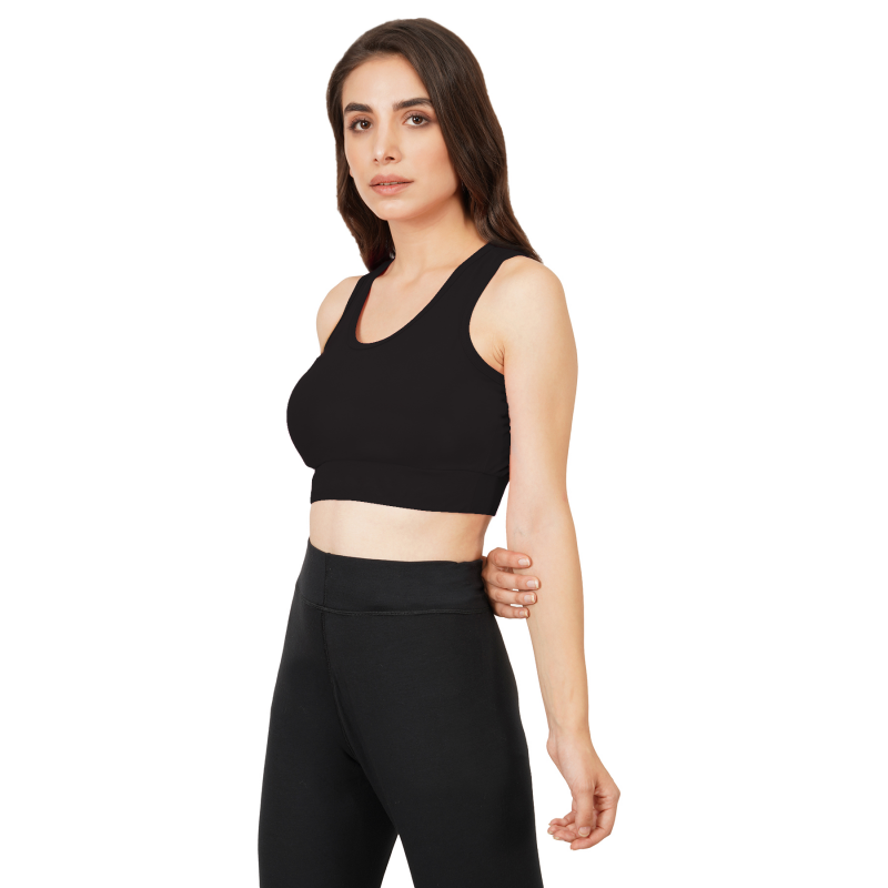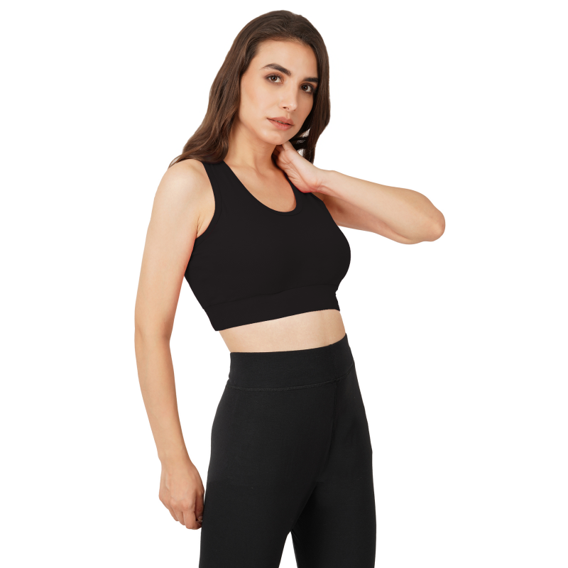 Designed with a racerback cut and a wide under-bust band, this sports bra provides maximum support, stability, and comfort. The non-padded, non-wired seamless structure ensures natural shaping and full bust coverage without any discomfort. Its lightweight construction and thermoregulatory nature help maintain body temperature in all conditions, making it perfect for both summer and winter workouts.