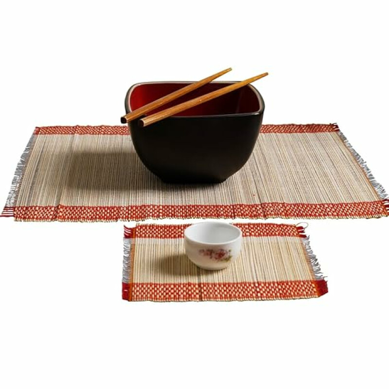 Bamboo Wooden Dining Table Mat – Rectangular Heat-resistant & Washable Placemats | Elegant & Durable Table Decor For Dining Room - 13 Pieces