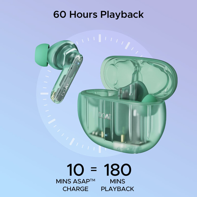Boat Airdopes 191 Anc Wireless Earbuds | Active Noise Cancellation Earbuds | Fast-charging Earbuds (pellucid Green)