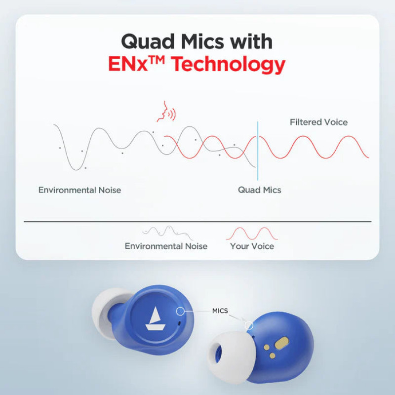 Boat Airdopes 501 Anc Anc Wireless Earbuds With Dual Mics With Enx Technology, Beast™ For Low Latency, 8mm Drivers - Blue