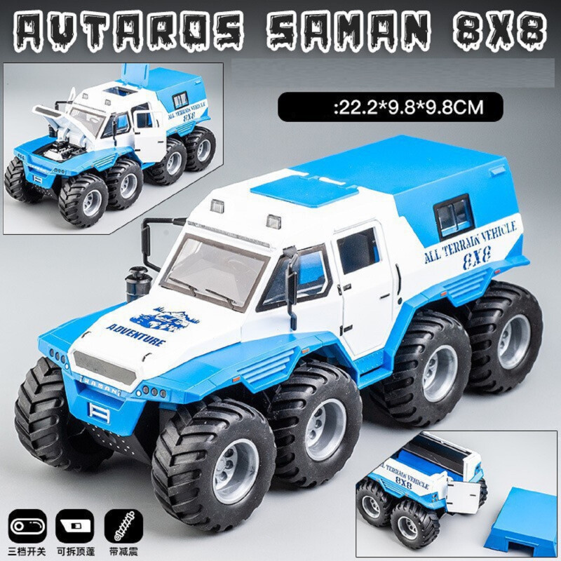 Conqueror Shaman Toy Car | Die-cast Pull Back Car | Alloy Metal Toy Car | 8x8 Off-road Toy | Blue Off-road Model Car | Metal Car With Sound