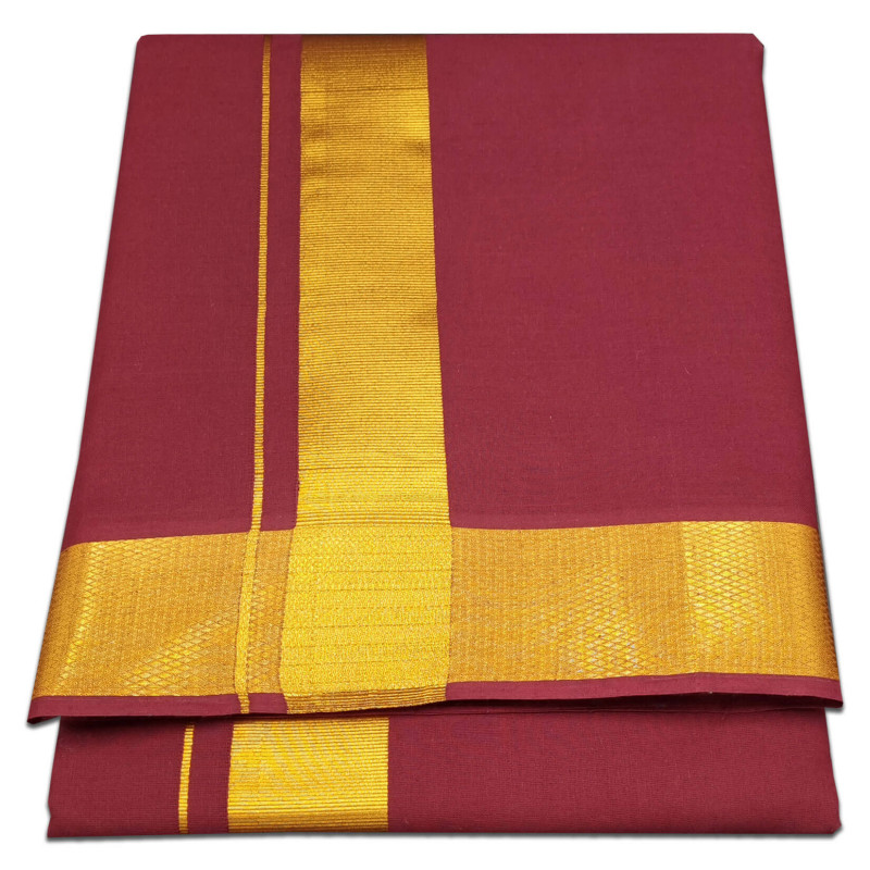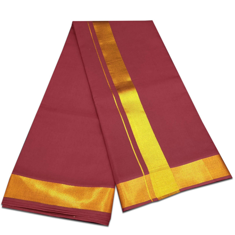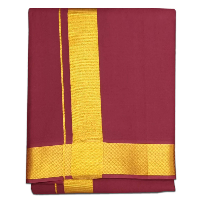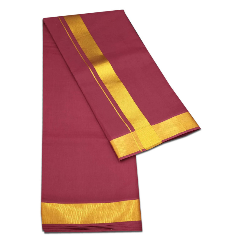 Cotton Maroon Color Dhoti With Golden Jari Border 9x5