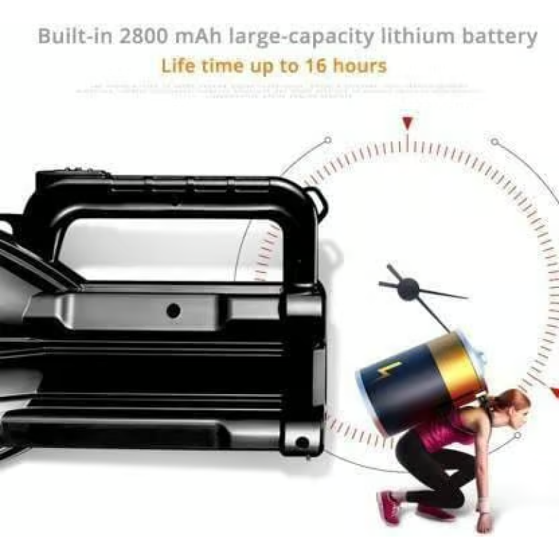 Crafted with a durable aluminum body, the searchlight is built to last and is water-resistant, making it suitable for use in various weather conditions. Its compact and portable design ensures it is easy to carry, adding convenience to its impressive functionality. This rechargeable flashlight is equipped with advanced LED technology, offering bright and focused light with exceptional energy efficiency.