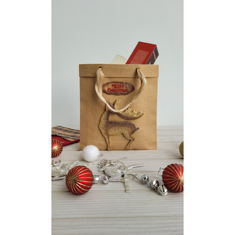 Eco-friendly Reindeer-themed Jute Bag | Durable And Reusable Christmas Present Tote For Gifting And Wrapping