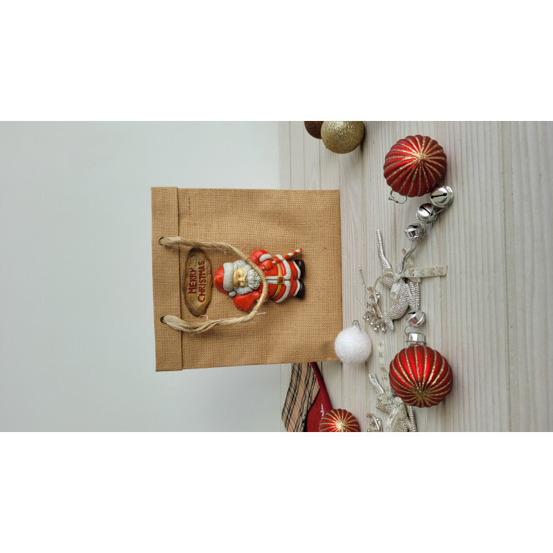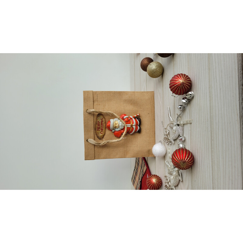 Eco-friendly Santa Claus Themed Jute Bag With Merry Christmas Sign | Handmade Reusable Christmas Bag For Gifting, Festive Decor & Hampers - Medium