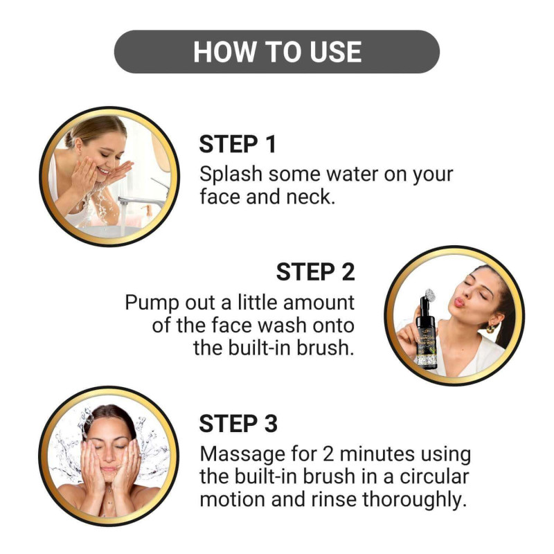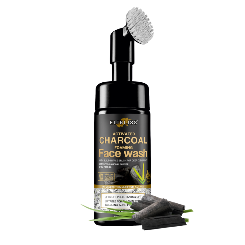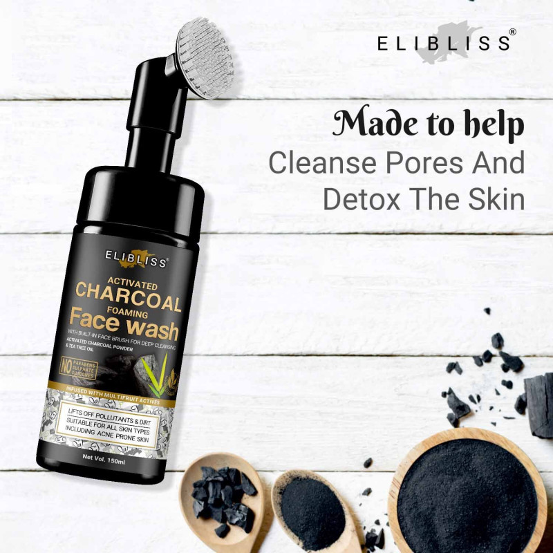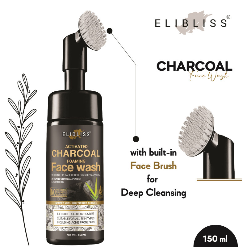 Elibliss Activated Charcoal Foaming Face Wash With Built In Face Brush | Deep Cleansing | Radiant Glow Face Wash - 150ml