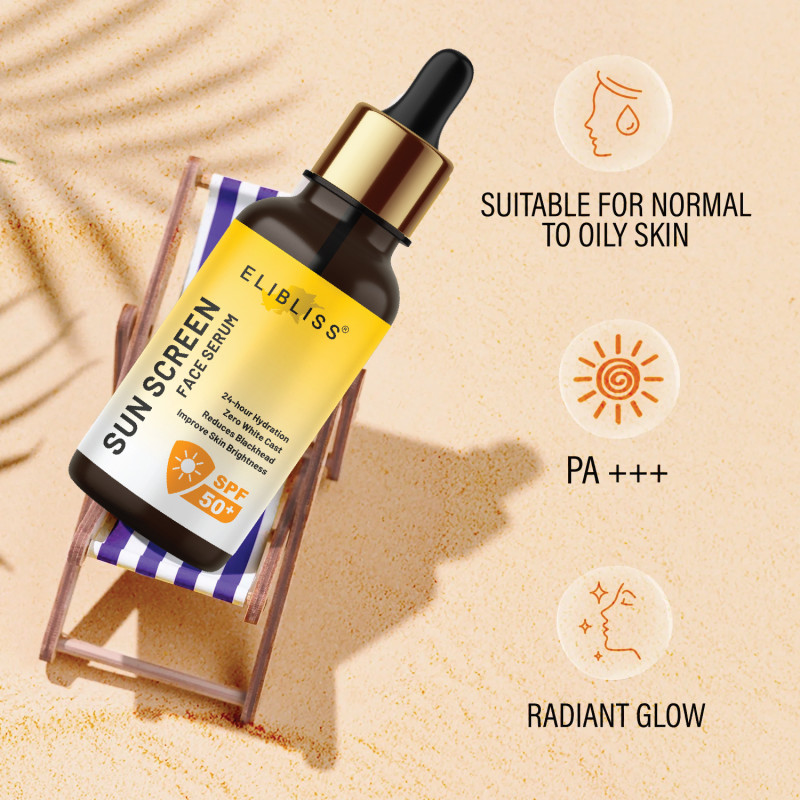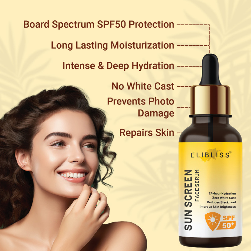 Elibliss Sunscreen Serum Spf 50 Pa+ | With Hyaluronic Acid | Broad Spectrum Uv Protection | For Dry & Oily Skin - 30ml