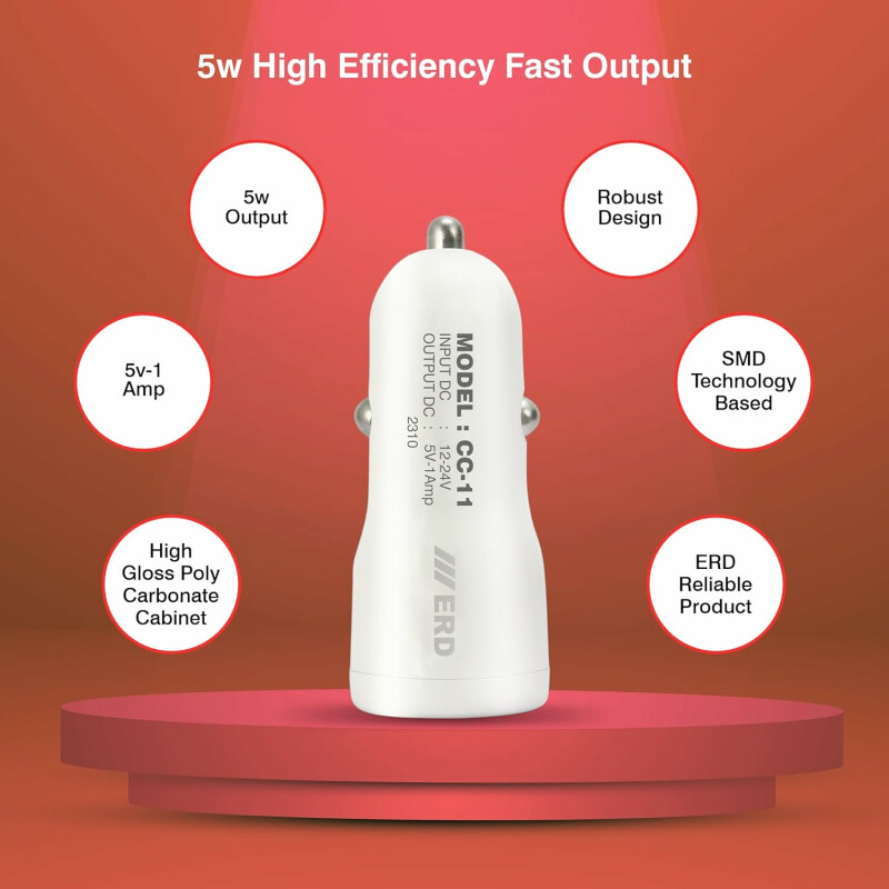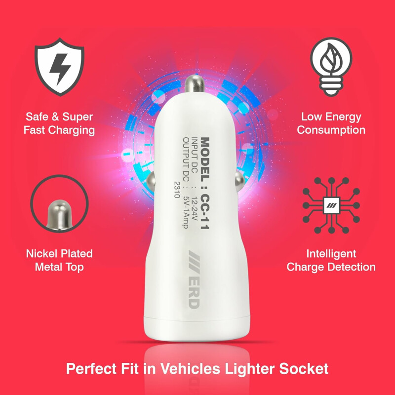 Erd Cc11 (1amp) Car Mobile Charger ( Dock Only) | Multi-device Car Charger | 5w Car Charger | Usb - A Fast Charging Car Adapter