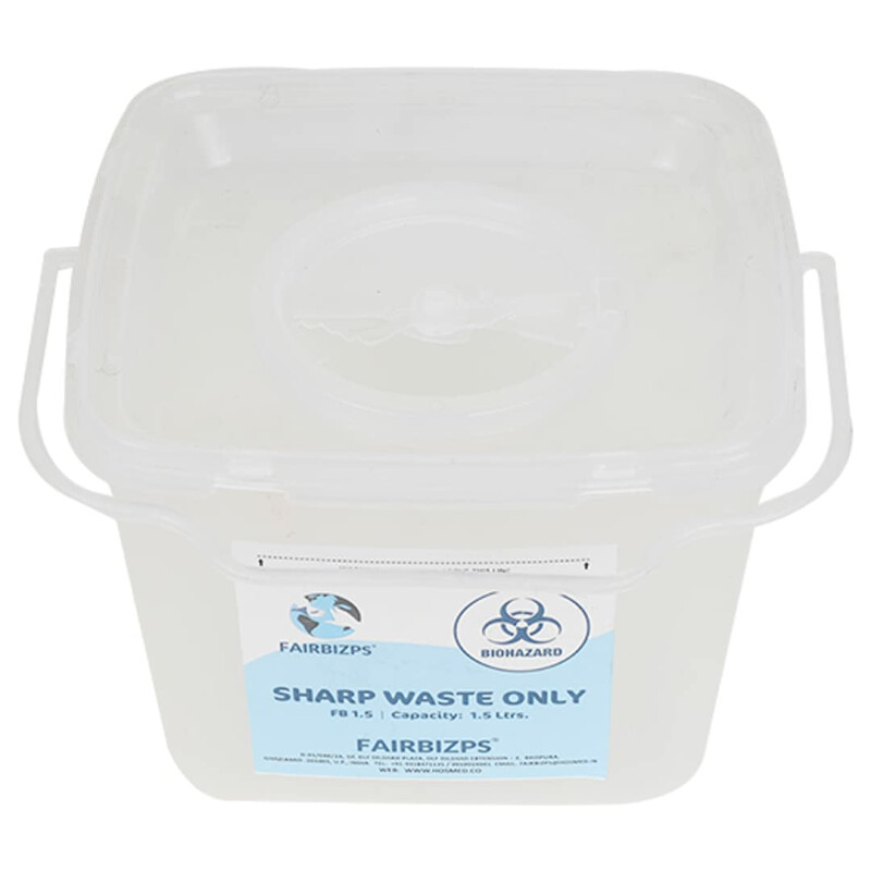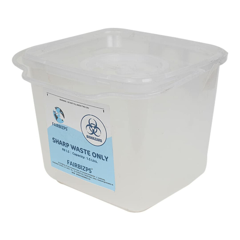 Ensure the safe disposal of bio-medical sharps with the FAIRBIZPS Sharps Container. Designed to comply with biomedical waste disposal norms, this container is ideal for needles, metallic implants, and other sharps. With a puncture-proof build, it guarantees safe handling and prevents accidental leaks or injuries. Its solid and stable shape ensures reliability during use in medical, dental, or laboratory environments.