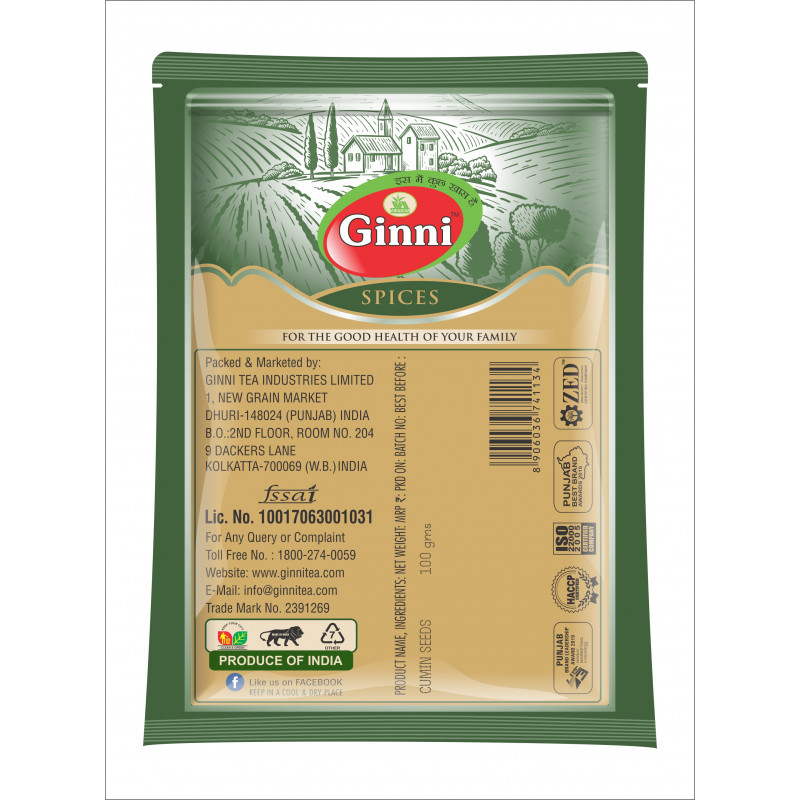 Ginni Pure Cumin Seeds/jeera/zeera/jeelakarra - 900gms (9 X 100g)
