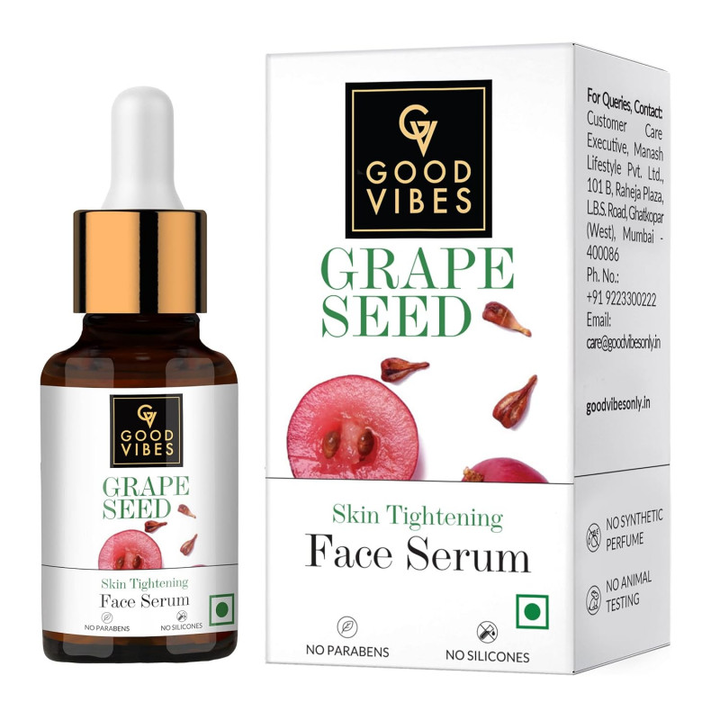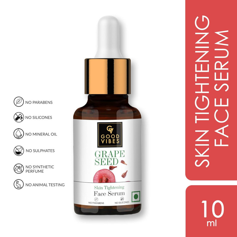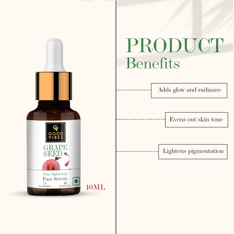Good Vibes Grape Seed Skin Illuminating Serum | 10 Ml Nourished Soft Skin Naturally Light Weight Glowing Formula For All Skin Types | Helps Reduce Blemishes & Fine Lines | No Parabens & No Animal Testing