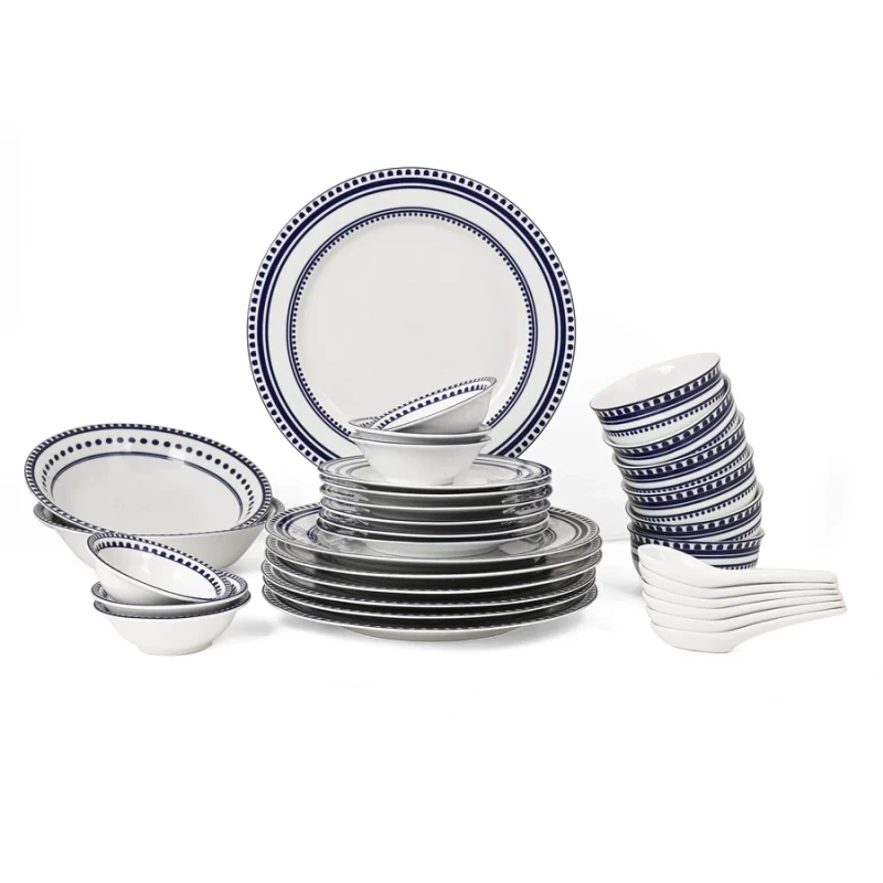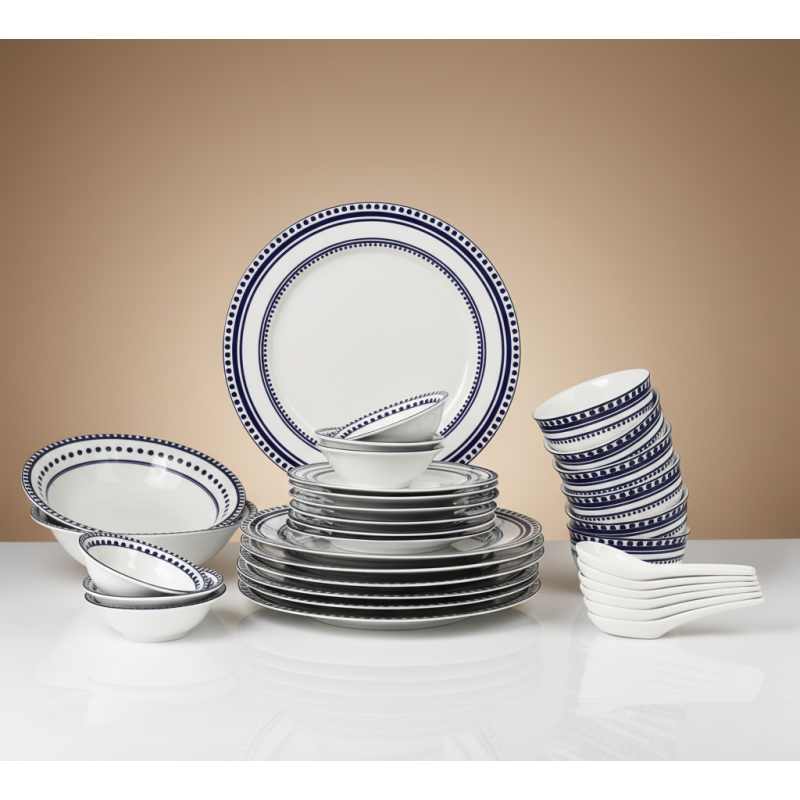 Hitkari Porcelain Renata Dinner Set – 33-piece Premium Luxury Porcelain Dinnerware | Microwave & Dishwasher Safe Crockery