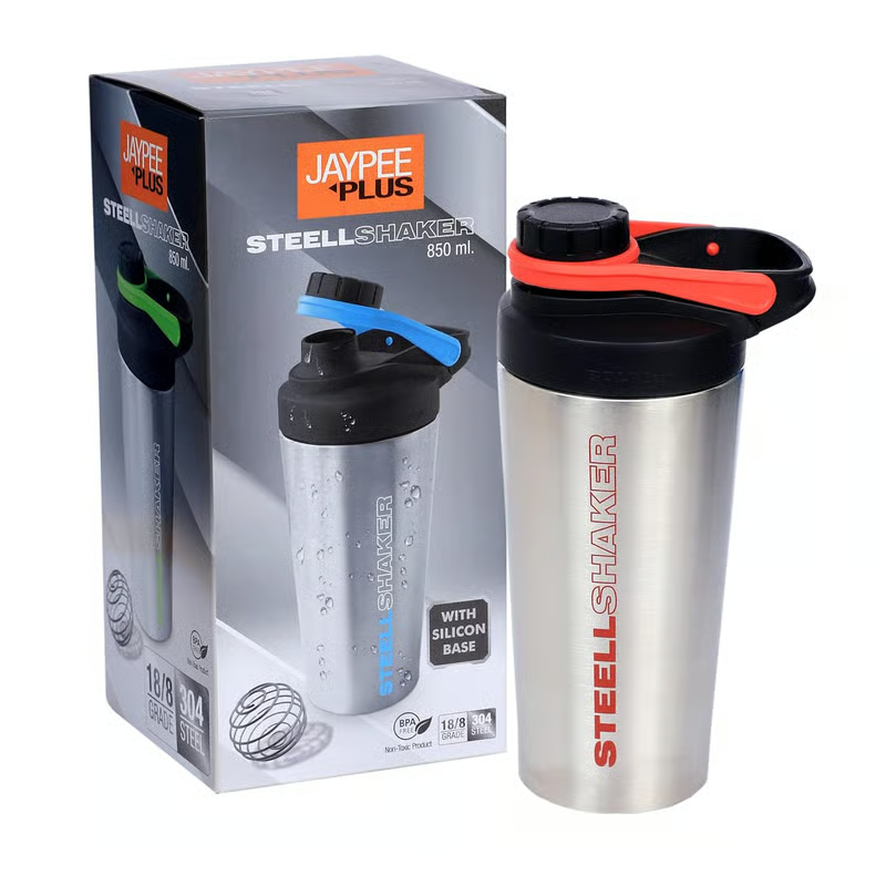 Jaypee Plus Stainless Steel Protein Shaker Bottle With Wire Blending Ball | Leak-proof, Gym & Sports Shaker - 700 Ml