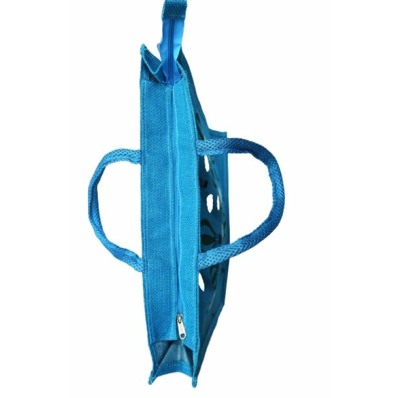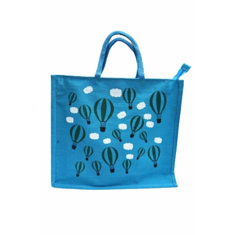 Jute Bag Blue For Shopping - Printed Jute Bag | Shoulder Bag | Shoppers Tote Bag |grocery Bag Jute Material | Parachute Printed Jute Bag