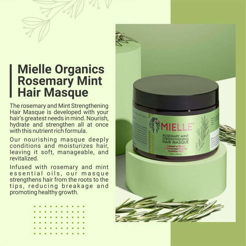 Mielle Rosemary Mint Strengthening Hair Masque With Biotin & Essential Oils | Deep Conditioning Repair Mask For Dry, Damaged & Frizzy Hair – 340gm