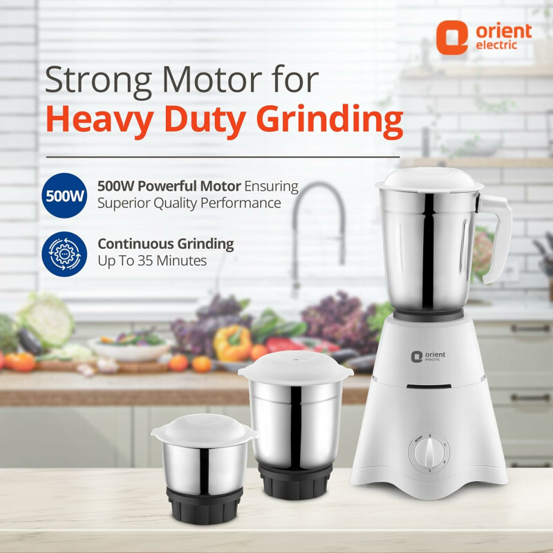 Experience effortless grinding with the 500W Mixer Grinder, engineered for maximum efficiency and longevity. Designed with a balanced coil motor, this appliance ensures a longer motor life, increased efficiency, and lower energy consumption, making it an ideal addition to every modern kitchen.