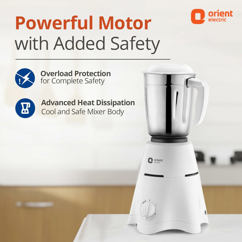 Safety is a top priority with Advanced Heat Dissipation Technology and Overload Protection, preventing the motor from overheating and extending its lifespan. Perfect for daily home use, this mixer grinder offers powerful performance, durability, and safety—all in one.