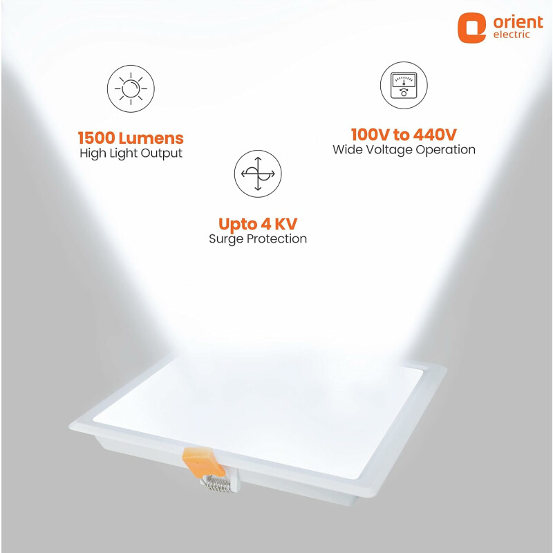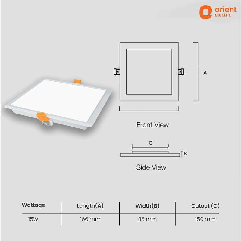 Orient Electric Moodlight Square Led Recess Panel | 4kv Surge-protected | 3-in-1 Color Changing Ceiling Light - 15w
