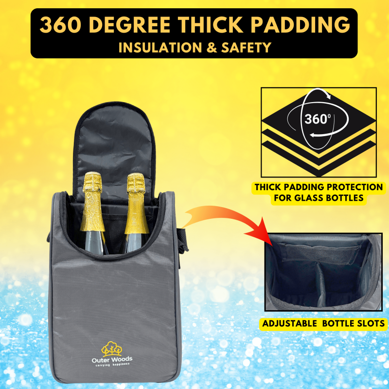 CARRY HAPPINESS: Carry Your Favourite Drinks like Wine, Beer, Whisky, Vodka, Soda, Juice, Milk and Water wherever you go. This Premium 2 Bottle Bag is perfect to accompany your next Leisure/Business Trip, BYOB Party and Picnic