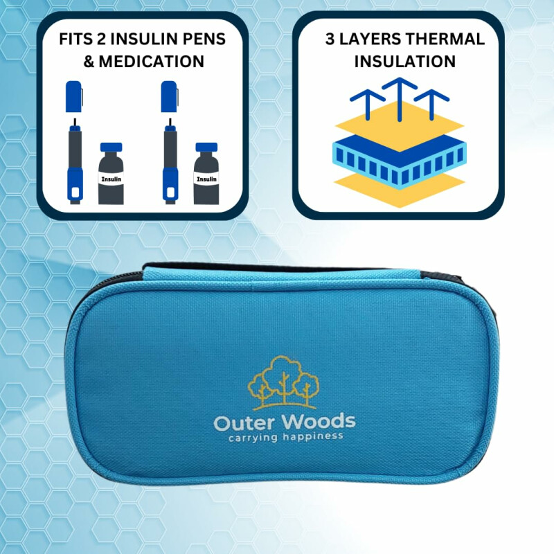 Whether you're traveling or leading an active lifestyle, the Outer Woods Cooling Pouch is designed to meet your needs. It's simple to use—just freeze the ice gel packs overnight, insert them into the side pockets, and zip up your supplies for a worry-free journey. Ideal for diabetics of all ages, this pouch is a must-have for maintaining the integrity of your medications.
