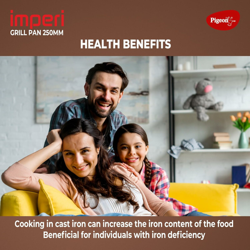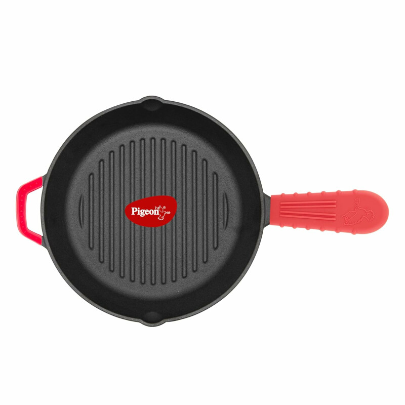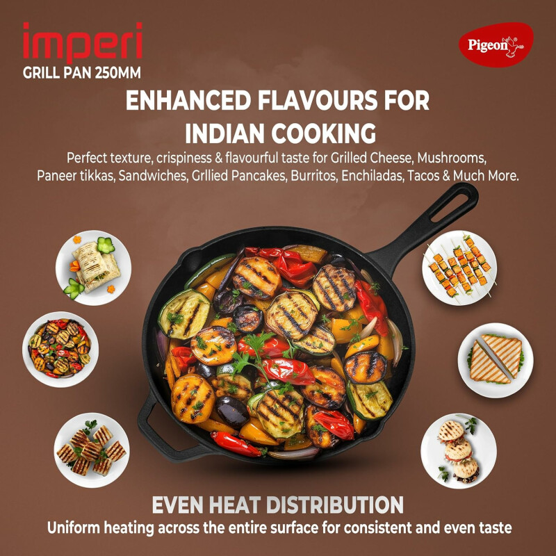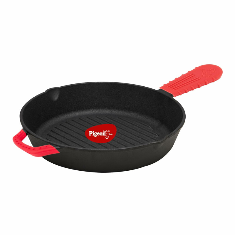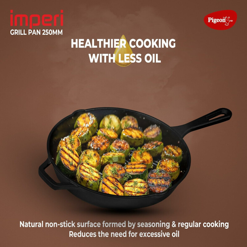 Pigeon Cast Iron Square Non-stick Grill Pan | Even Heat Distribution | Induction & Gas Stovetop Compatible | Durable Heavy Duty Pan | Healthy Cooking With Less Oil - Black (25cm)