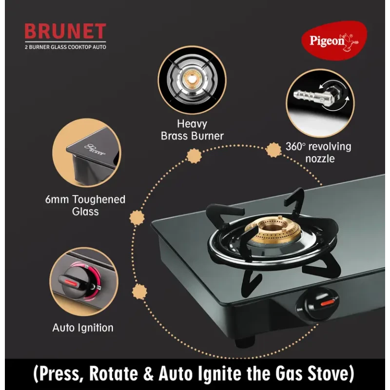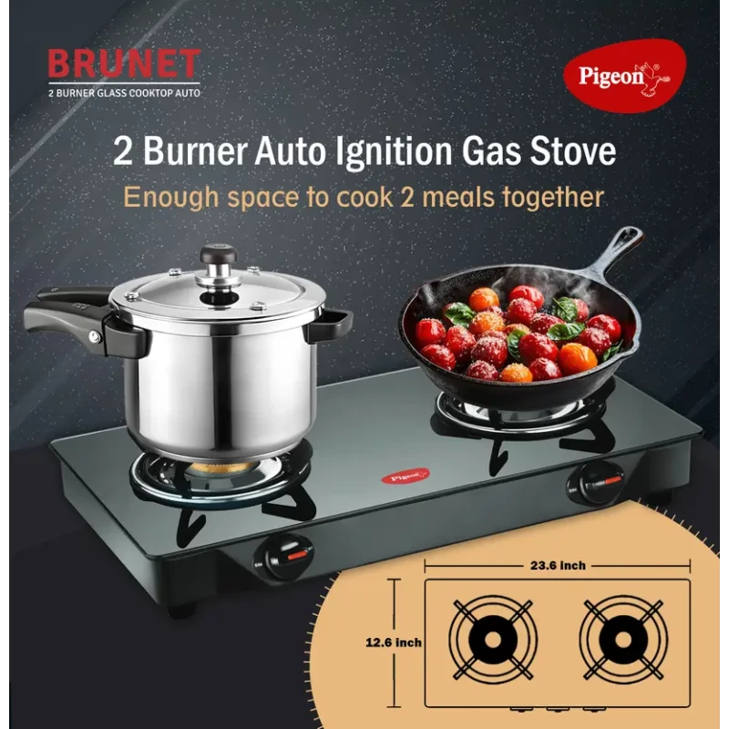 Upgrade your kitchen with the Pigeon Glass Top 2 Burner Manual Gas Stove (GT 2B, Black), designed to combine modern elegance with superior performance. Built with high-quality materials and advanced technology, this gas stove ensures safe, efficient, and hassle-free cooking for your family.