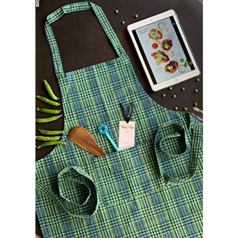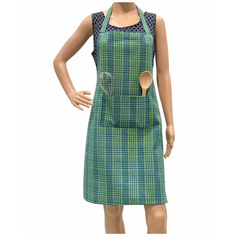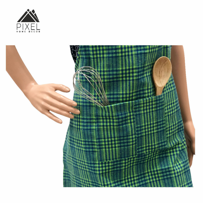 Pixel Towel Premium Pure Cotton Green Stripe Apron - Stylish, Breathable And Practical Kitchen Essential | Pack Of 1