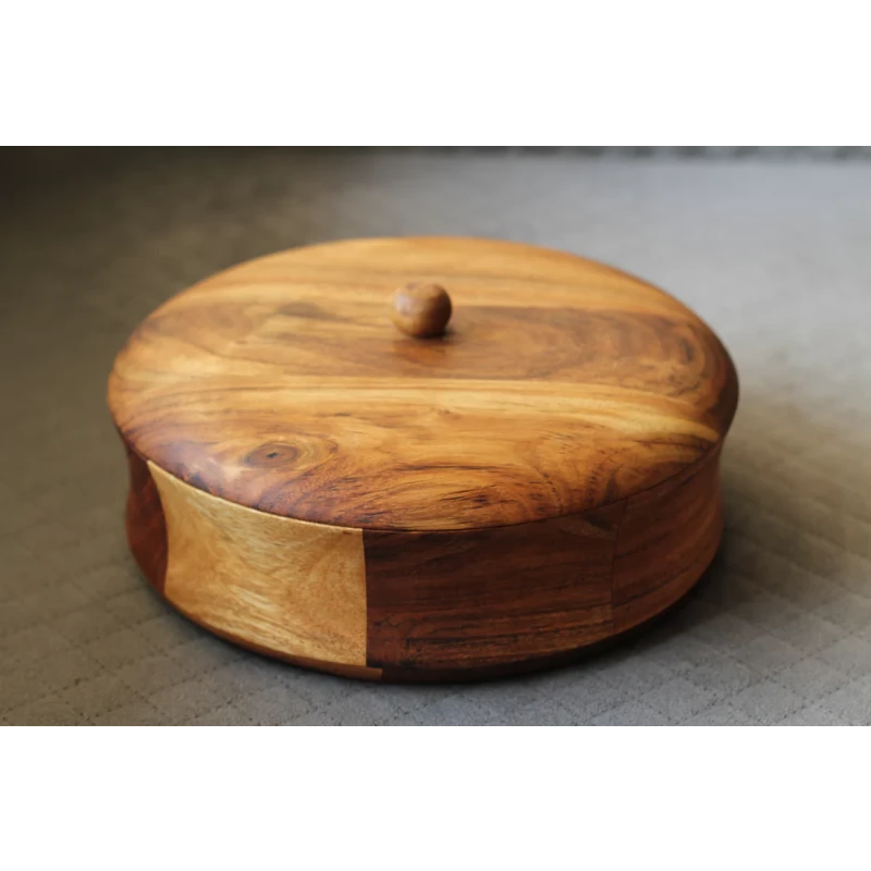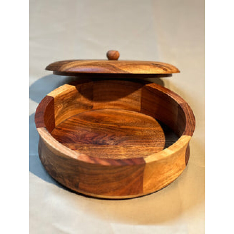 Acacia Wood Casserole / Roti Box – Made from high-quality Acacia wood, this elegant casserole box keeps rotis warm and fresh. Its natural finish adds a rustic charm to your dining table while offering practical functionality. Elevate your dining experience with this beautifully crafted Premium Acacia Wood Casserole/Roti Box, designed to keep your rotis and chapatis fresh, soft, and warm. Made from 100% natural acacia wood, this wooden roti box adds rustic charm and modern elegance to your kitchen or dining setup. The box features a smooth finish, natural grain patterns, and a fitted lid that helps retain warmth.