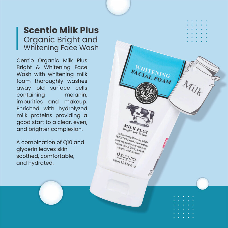 Scentio Milk Plus Organic Bright & Whitening Face Wash (Made in Thailand) – Natural Skin Care for Radiant, Fresh Skin