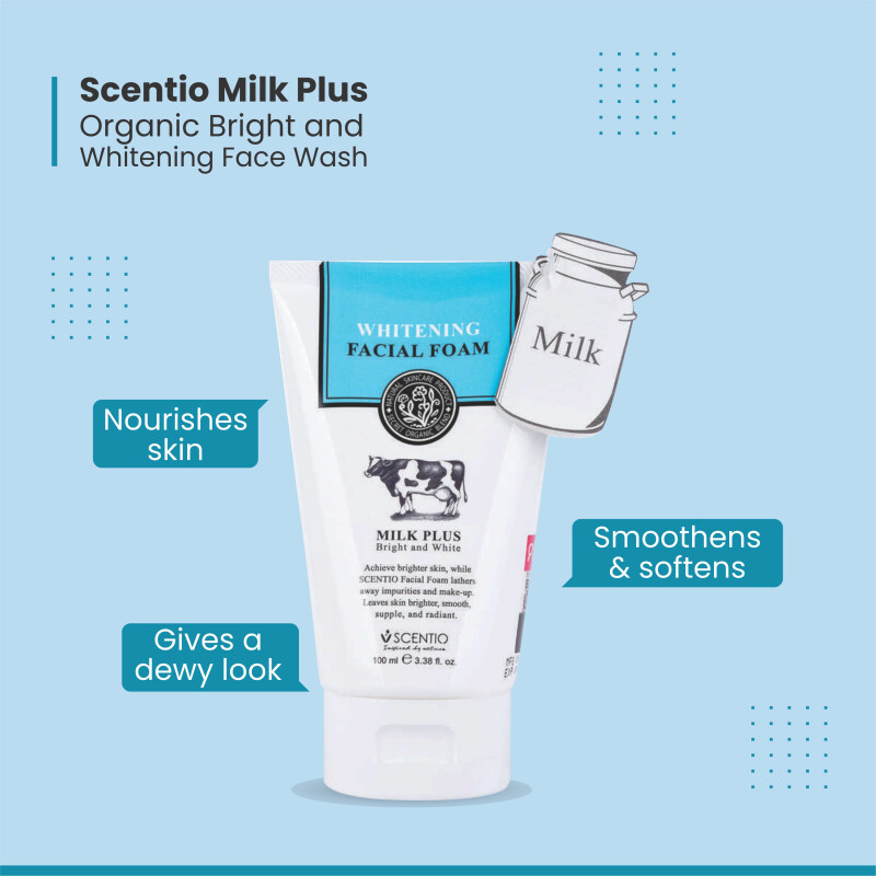 A good cleanser is only as effective as its ingredients. Scentio Milk Plus Face Wash combines natural goodness with advanced skincare science: