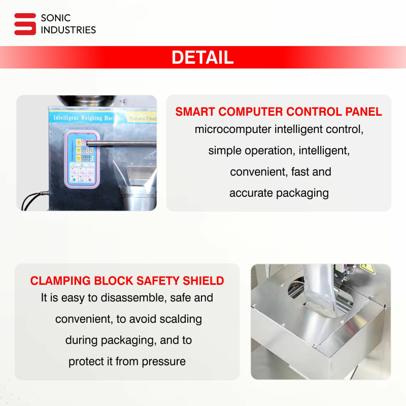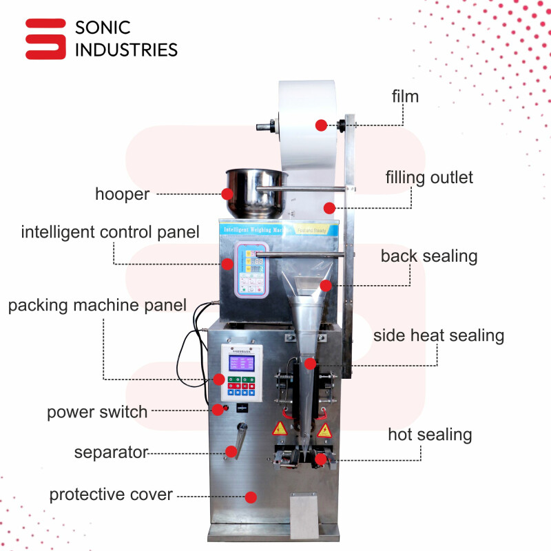Sonic Industries Ffs 1000 Single-head Automatic Granule And Powder Filling And Packaging Machine (50g To 1kg) With High-precision Weighing And 420mm Max Roll Width