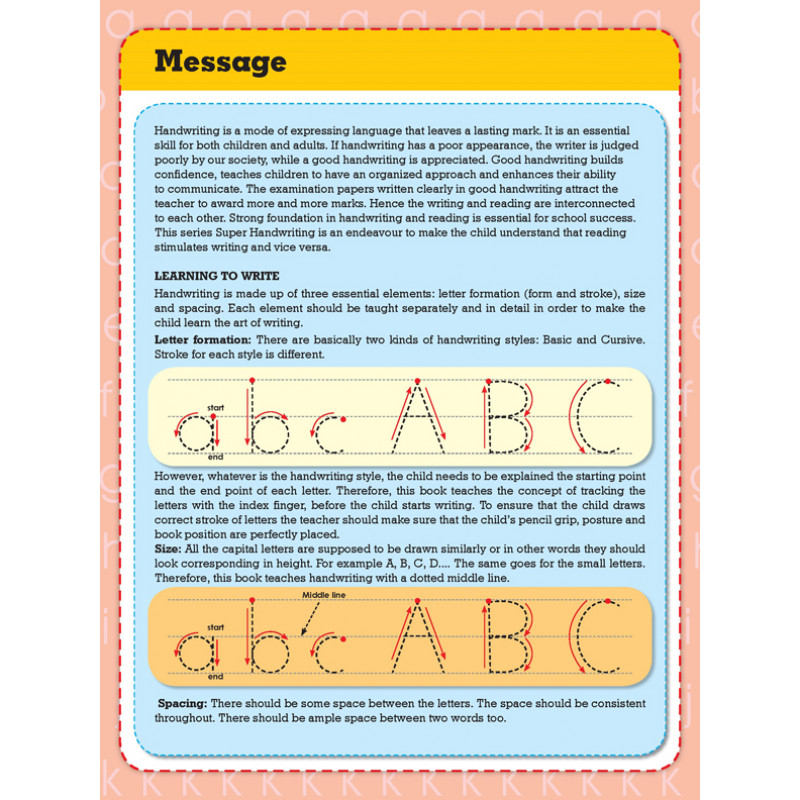 More than just a writing practice notebook, the Super Hand Writing Book - Part 2 doubles as a handwriting journal, providing students with a dedicated space to track their progress, set goals, and reflect on their writing journey. Encouraging regular practice and self-assessment, this notebook empowers students to take ownership of their handwriting development and strive for continuous improvement.