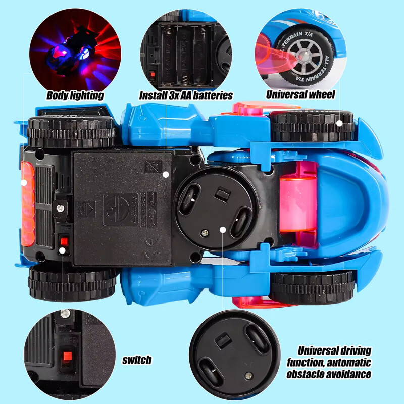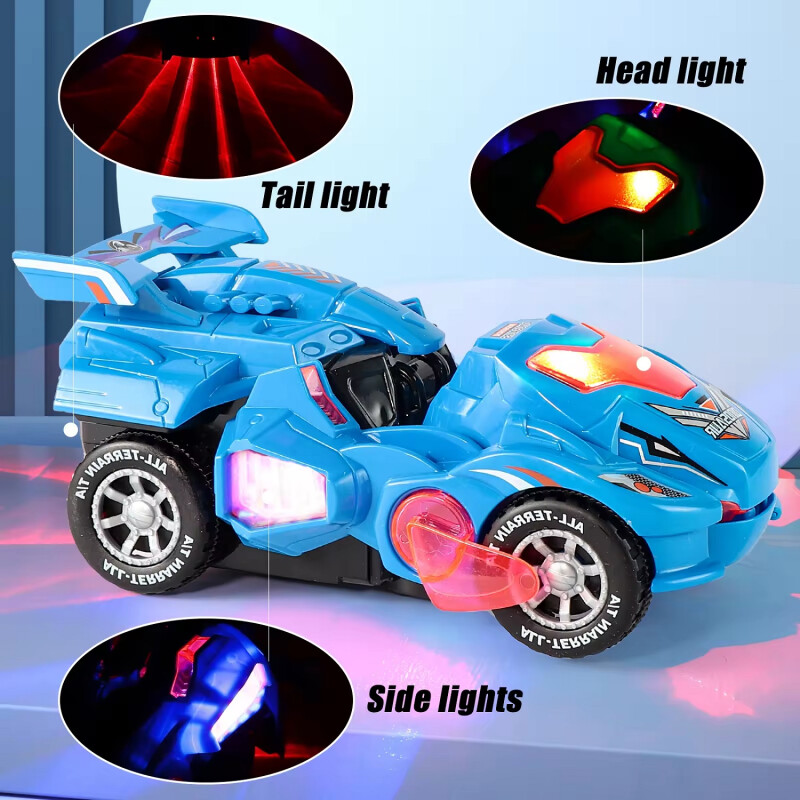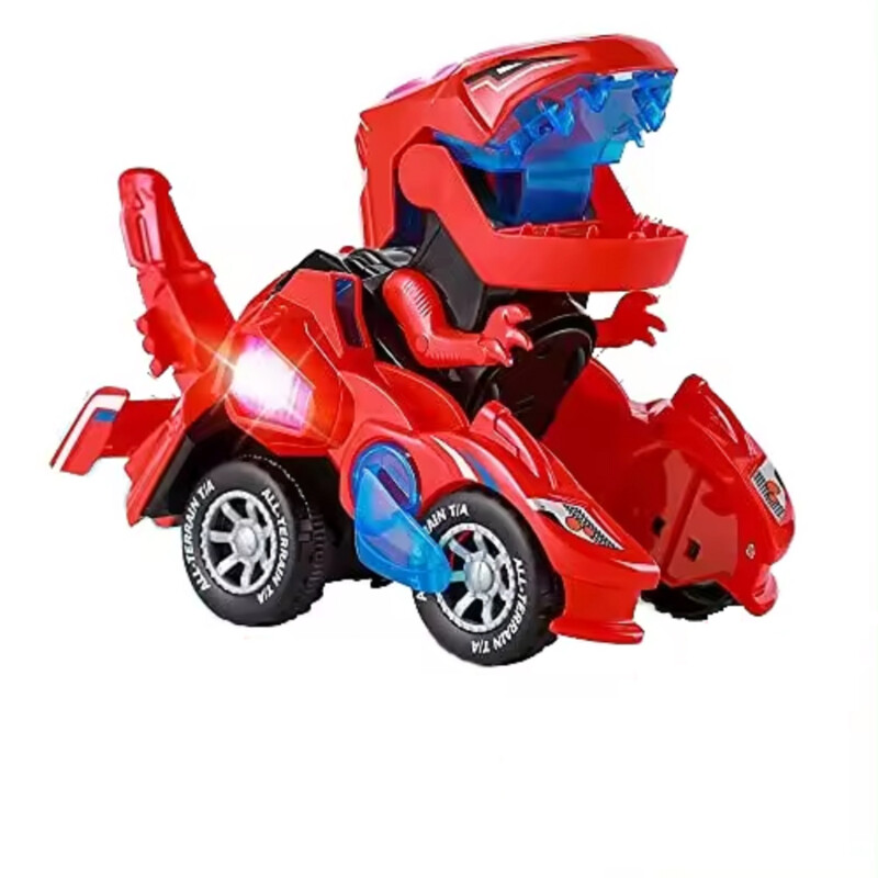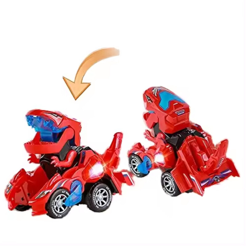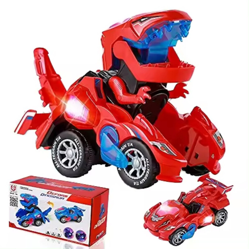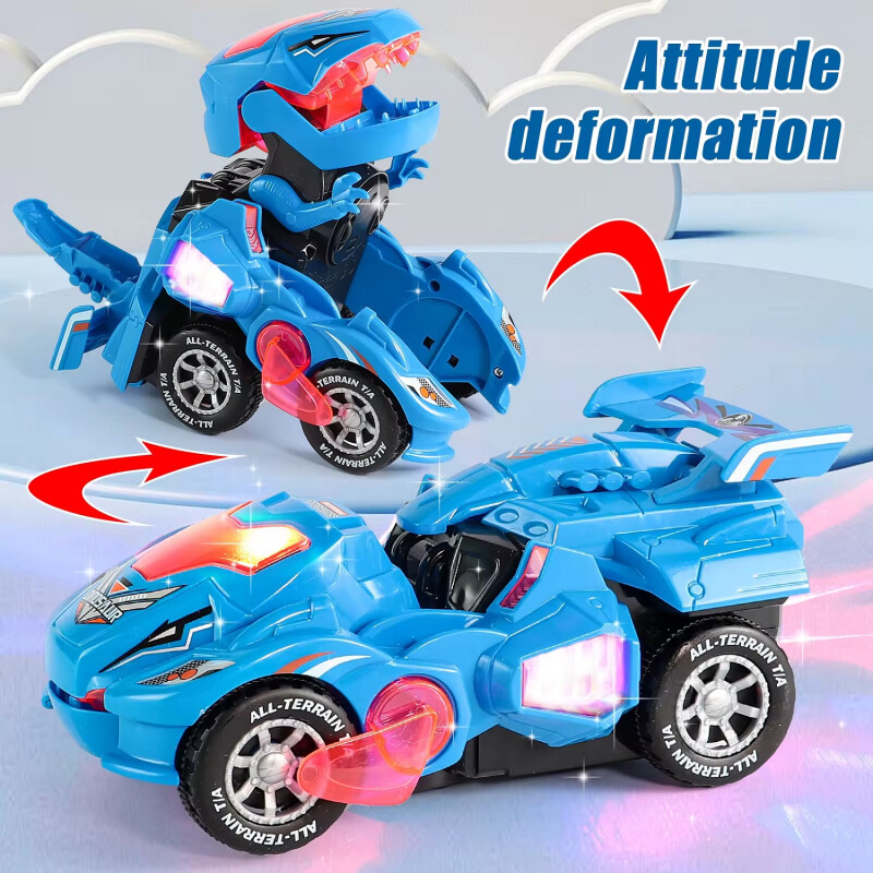 Automatic Transforming: Dinosaur car toy is a toy that combines dinosaur toys and toy cars into one! It can convert from a toy car to a dinosaur toy automatically after driving for a while, then change back into a toy car, going on driving. Once the toy car convert to a dinosaur toy, it makes a roaring sound.