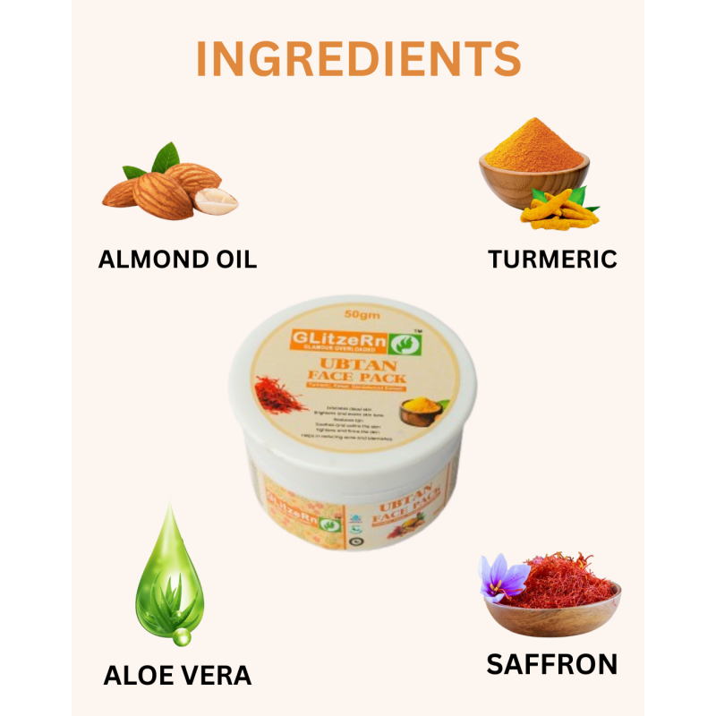 Ubtan Face Pack For Glowing Skin – Herbal Face Mask With Turmeric, Saffron & Gram Flour For Acne Control, Tan Removal & Skin Brightening – 50g