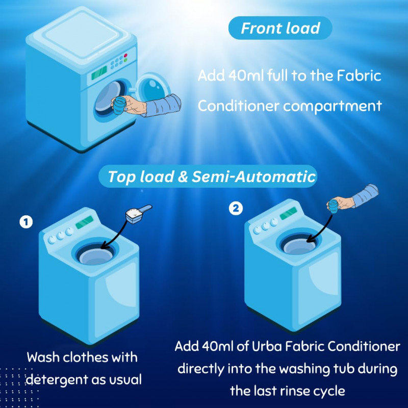 Infused with a rich perfume and anti-microbial properties, URBADew Fresh goes beyond the ordinary, ensuring your fabrics not only feel irresistibly soft but also maintain a pristine, hygienic state. Bid adieu to ordinary fabric softeners; this powerhouse formulation leaves a long-lasting fragrance that envelops your clothes in an aura of freshness.