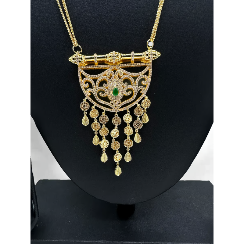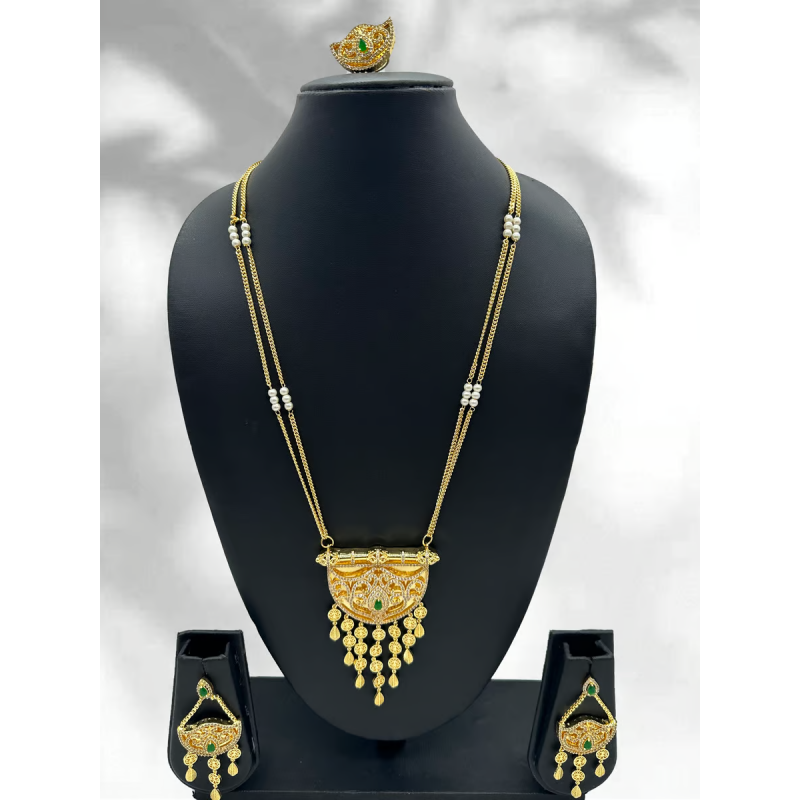 Women's Gold-plated Brass Jewelry Set | Double Layer Chain With Pendant | Cz Stones Chain And Earrings | Minimalist Pendant Set | Trendy Fashion Jewelry