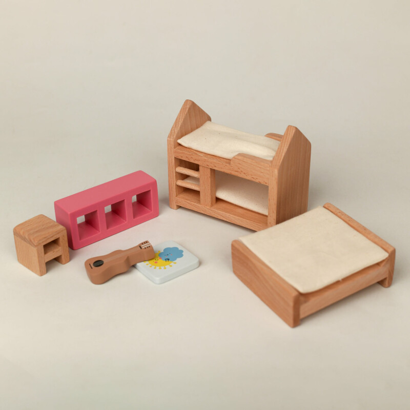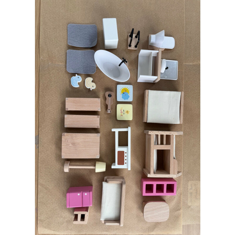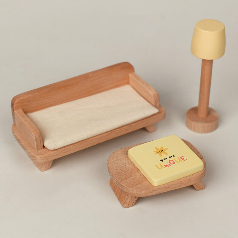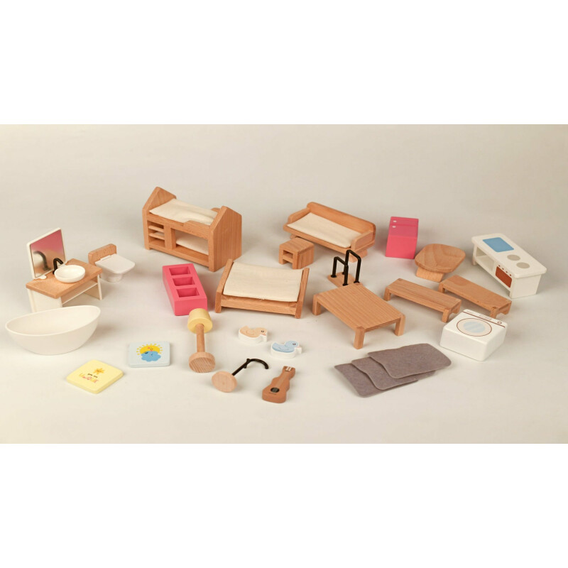 Wooden Doll House Furniture Set – Eco-friendly Non-toxic Miniature Home Accessories For Toddlers & Kids | Educational Creative Pretend Play Furniture