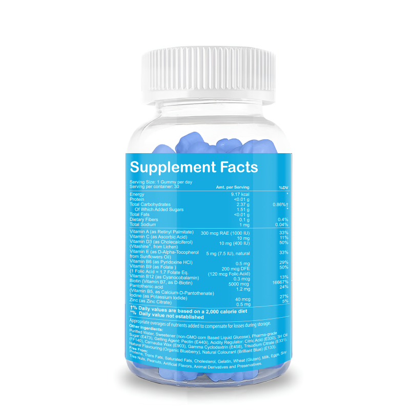 Biotin plays a vital role in energy metabolism, and when combined with antioxidant support, it boosts your ability to absorb iron—reducing fatigue and helping you feel more energetic throughout the day. Plus, the blueberry flavor makes your daily wellness ritual enjoyable and easy to stick to.